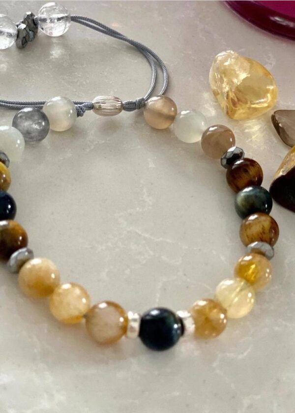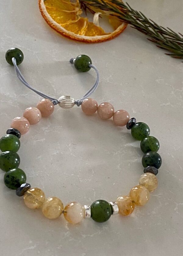 Yeşim Sitrin Güneş Taşı İpli Nazar Bileklik 8mm | Gümüş Kapama