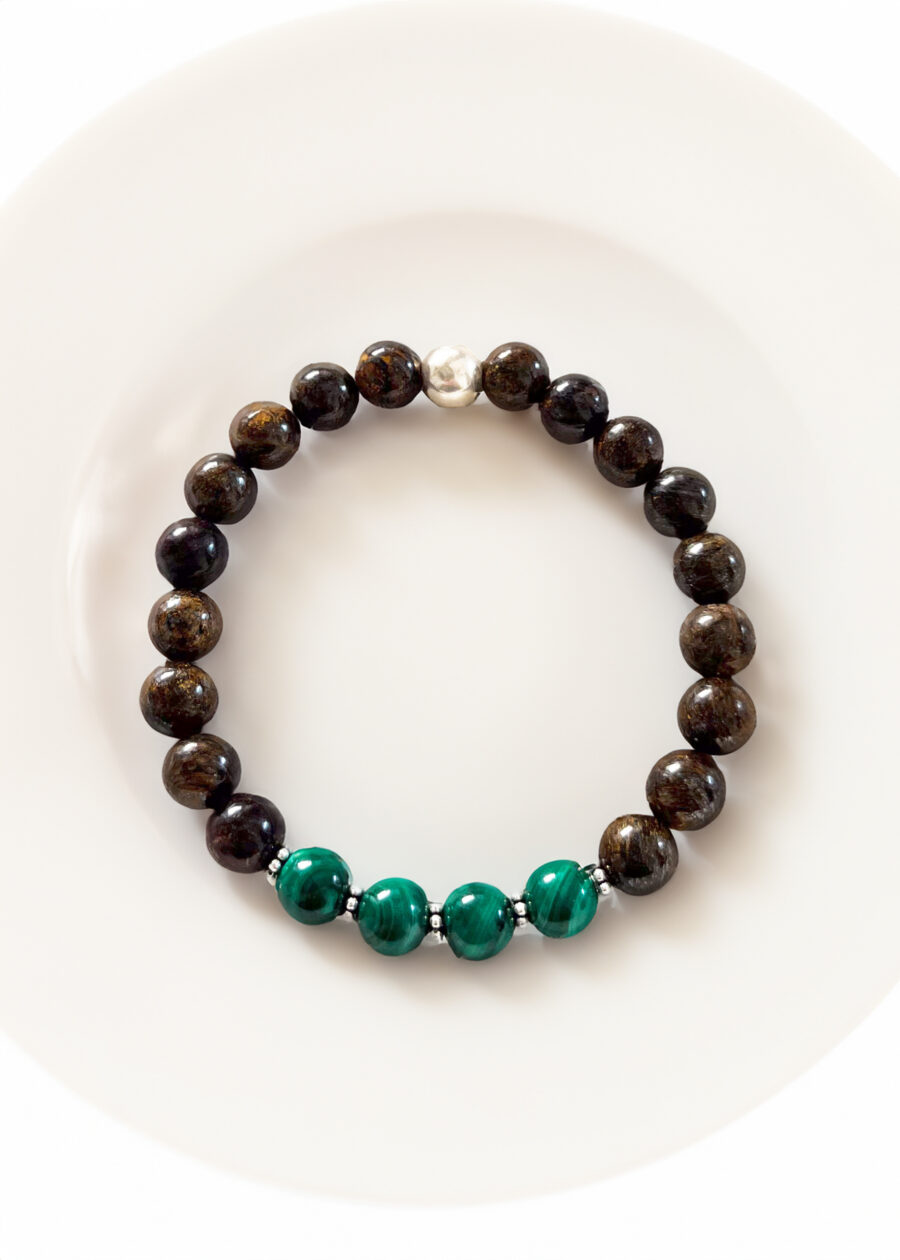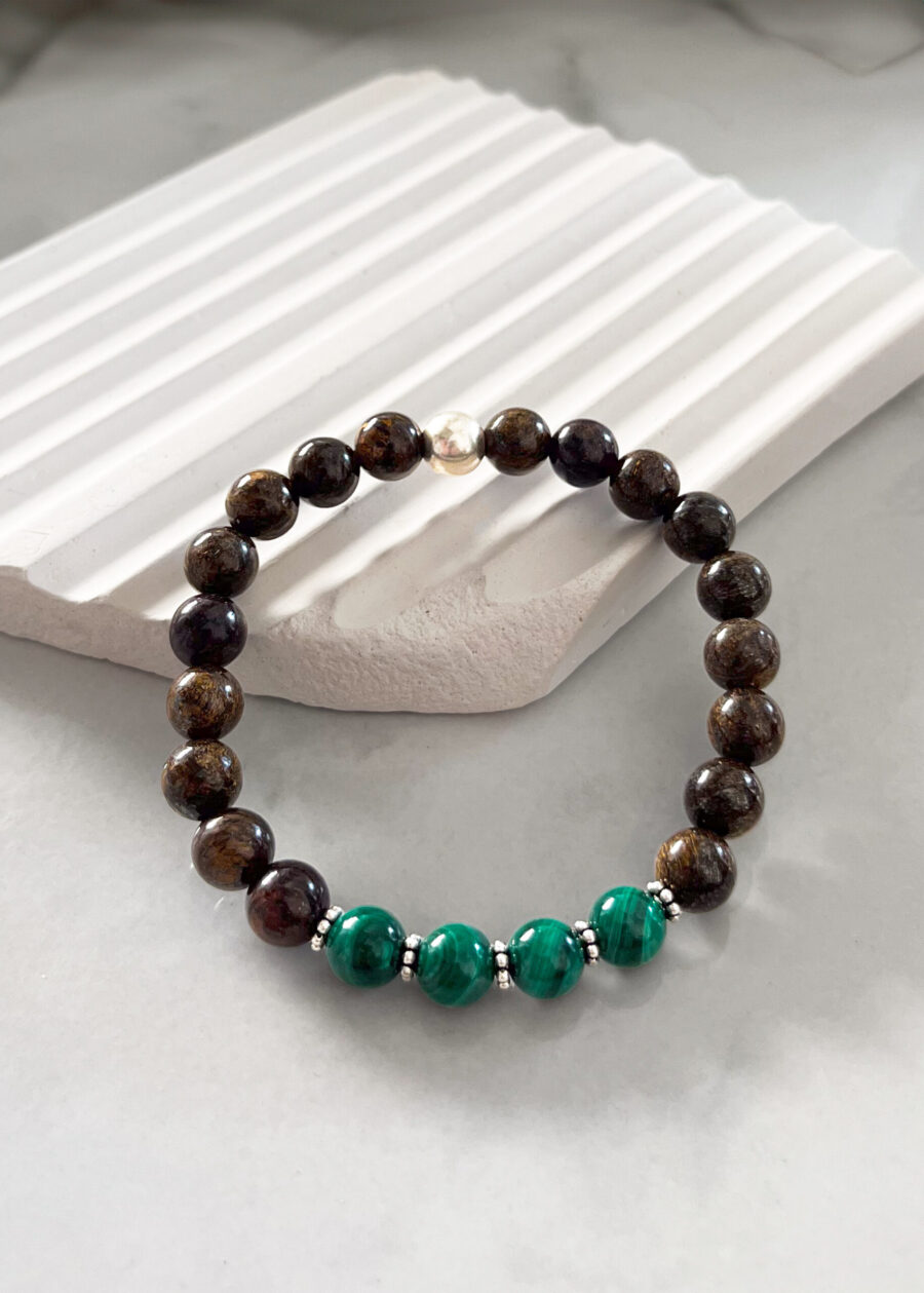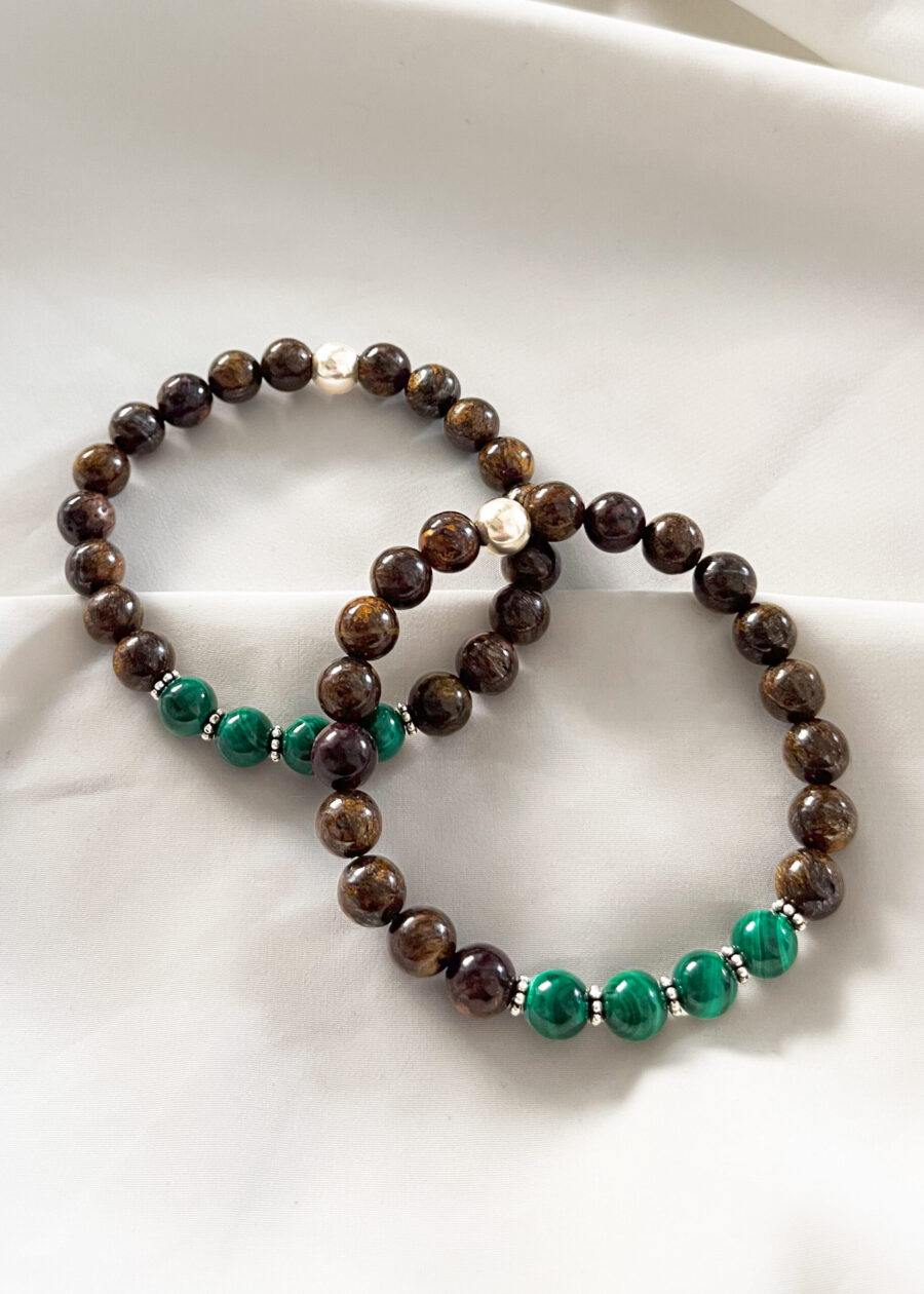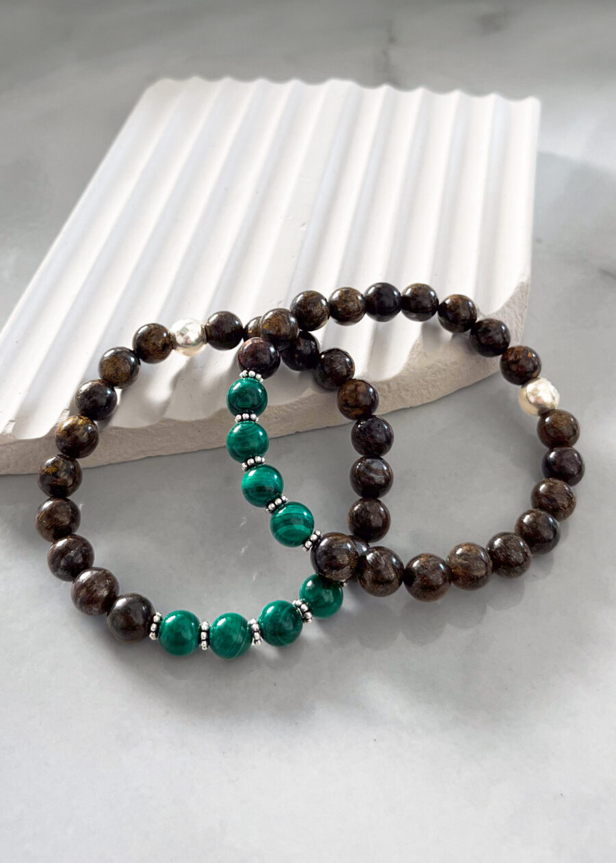 - Bronzit ve Malakit 8mm Doğal Taş Bileklik