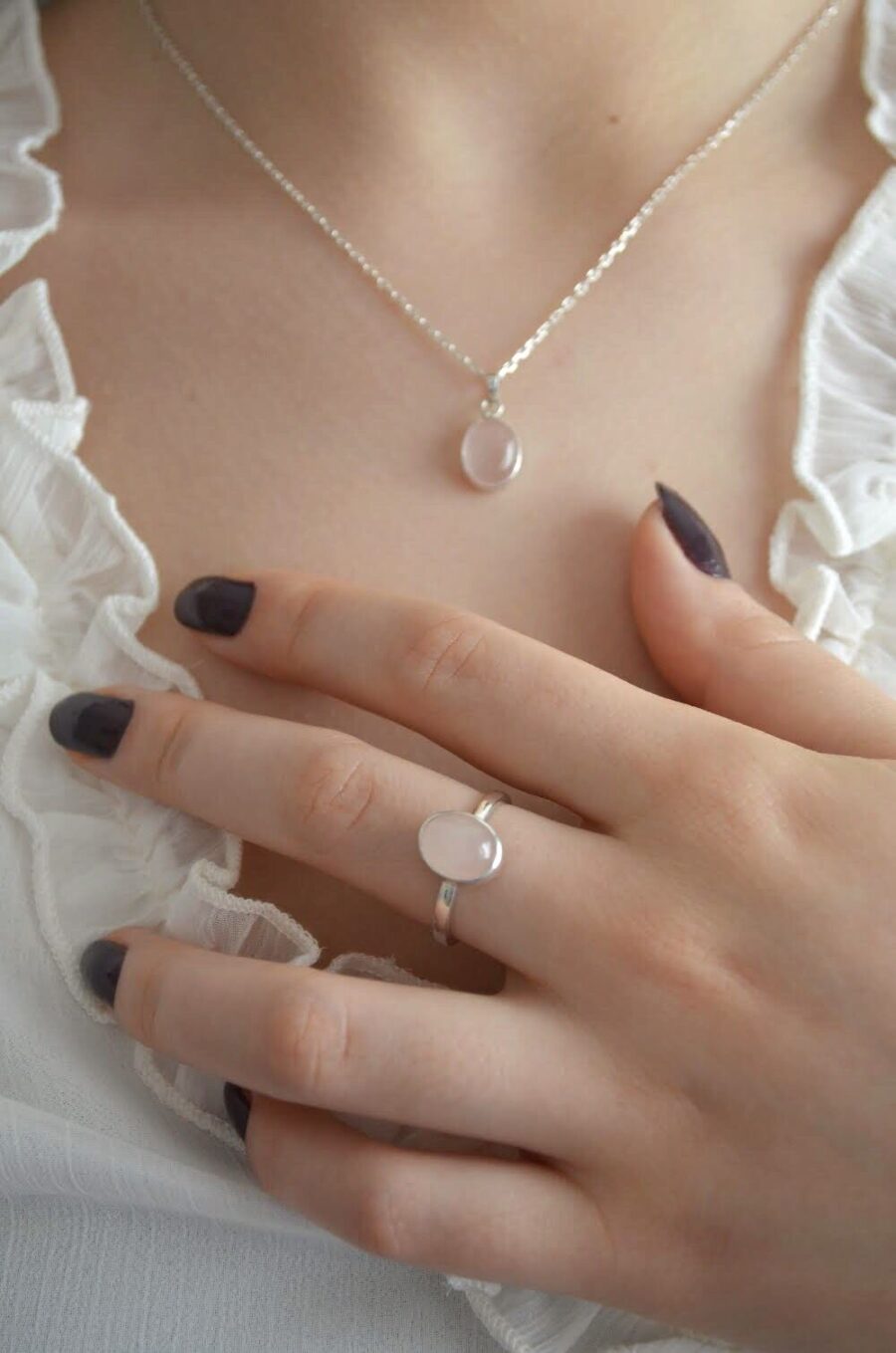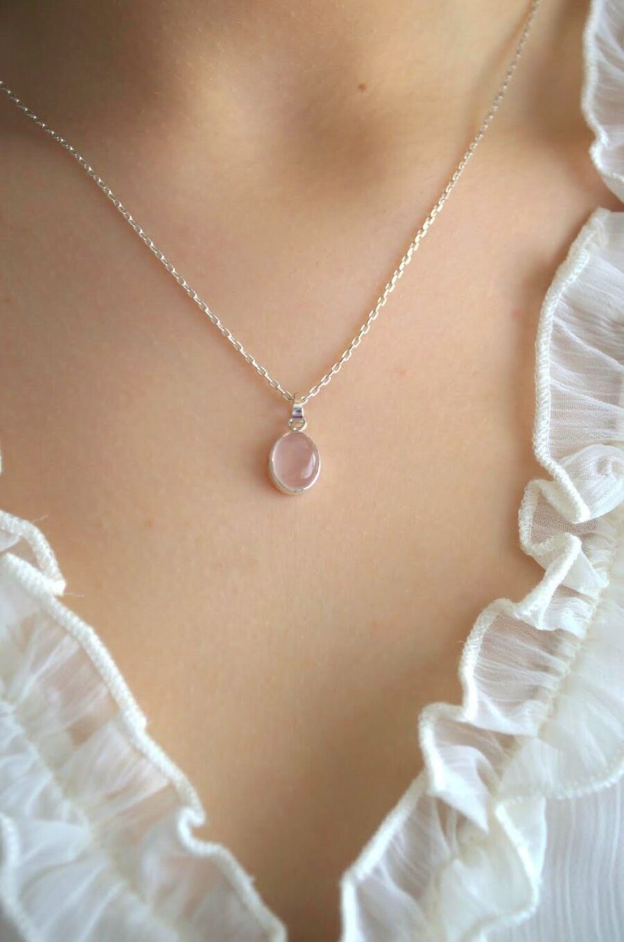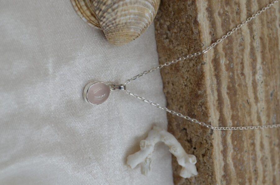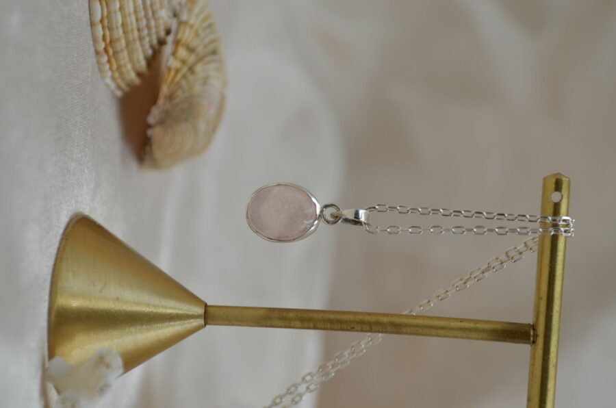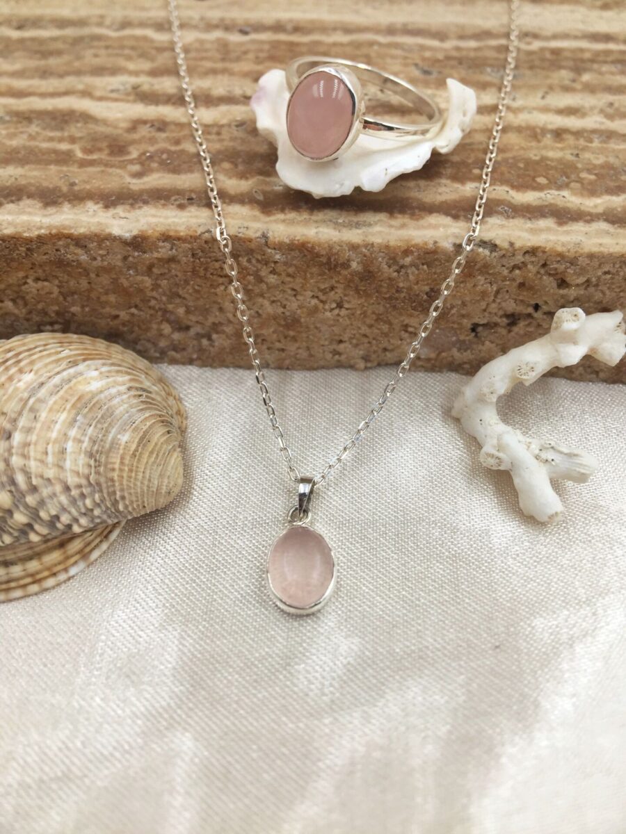 Gerçek Oval Pembe Kedi Gözü Kolye | 925 ® Gümüş