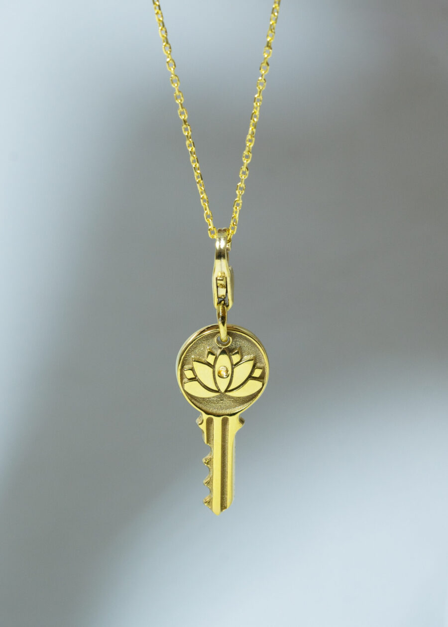 Lotus Sembollü Pembe Kuvarslı Ve Aşk Sekanslı Altın Kaplama Gümüş Anahtar Kolye