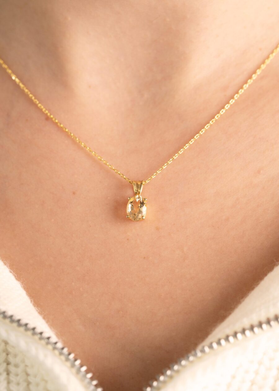 Oval Form Sitrin 925 Ayar Gümüş Kolye
