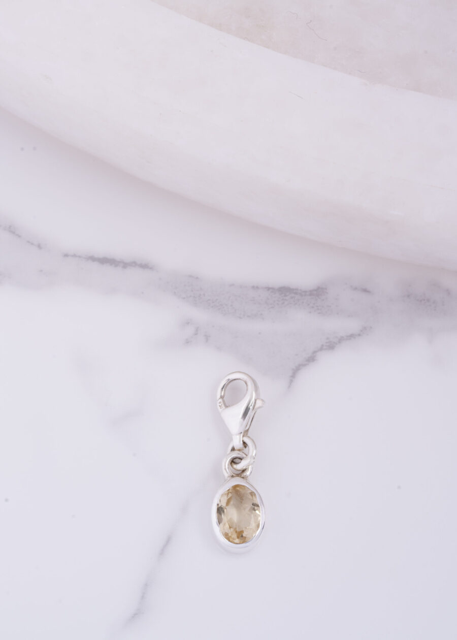 Charmın merkezinde yer alan sitrin taşı, altın sarısı ve kehribar tonlarında parlayan renkleriyle sıcak bir ışıltı sunar. Sitrin, genellikle neşeyi, bolluğu ve enerjiyi simgeler. Aynı zamanda kişisel gücü arttırdığına ve pozitif enerjileri çekmeye yardımcı olduğuna inanılır. Sitrin, stres ve kaygıyı azaltan, olumlu düşünceleri teşvik eden bir taş olarak bilinir.