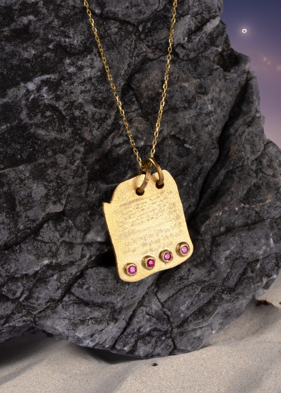 Yakut Taşlı Dualı Özel Tasarım Altın Kaplama 925 Ayar Gümüş Kolye
